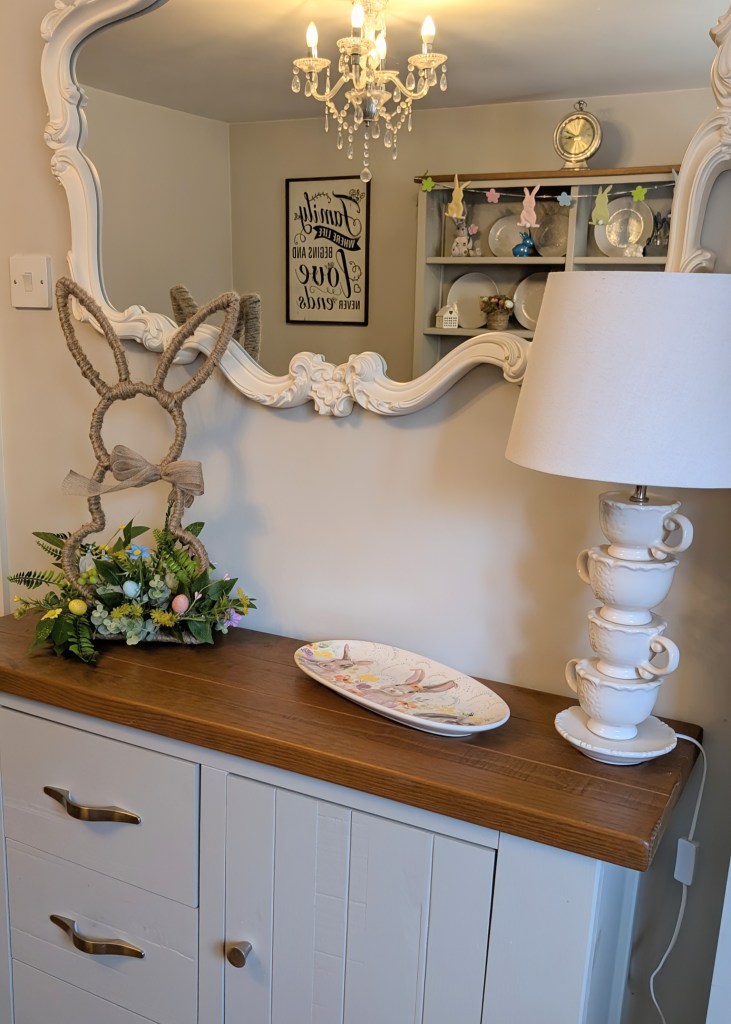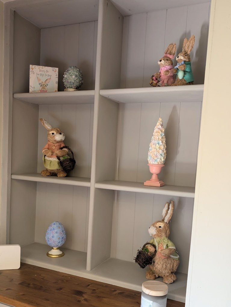 This year, I’ve gone a little bunny-mad—and I’m not sorry! From fluffy-eared figurines to ceramic rabbits in soft pastel shades, our home is hopping with Easter joy. I’ve dotted bunnies around the house like a cheerful treasure hunt—some peeking out from behind plant pots, others perched proudly on shelves.