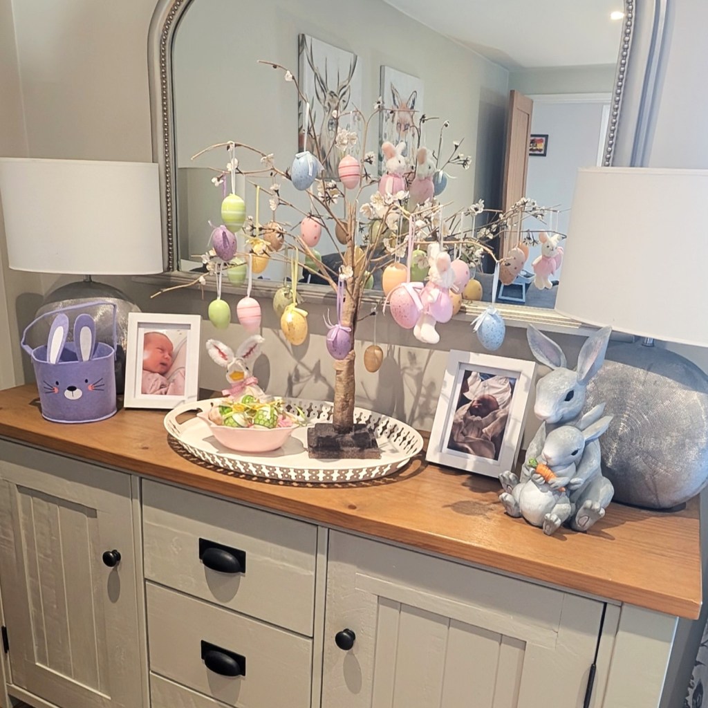 In our living room, we have a little Easter tree. It’s such a fun tradition for little ones—I let my 4-year-old help hang the eggs (and then I might gently rearrange them once she’s in bed. Mum life + mild décor OCD = a very colourful compromise!).